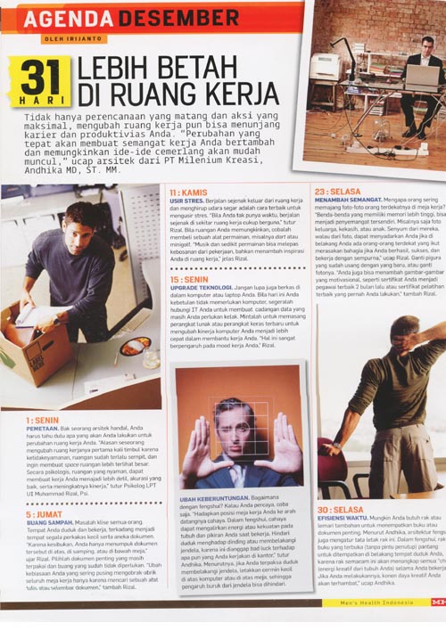 Andhika MD,ST,MM dalam Rubrik Arsitektur Majalah Men's Health Indonesia