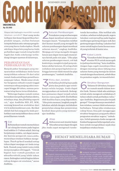 Andhika MD,ST,MM dalam Rubrik Arsitektur Majalah Good Housekeeping Indonesia